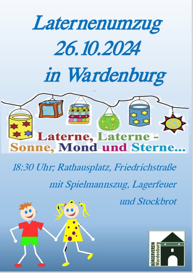 Am 26. Oktober soll ab 18:30 Uhr der diesjährige Laternenumzug stattfinden. Wir treffen uns in diesem Jahr bereits um 18:30 Uhr, anders als in den letzten Jahren!